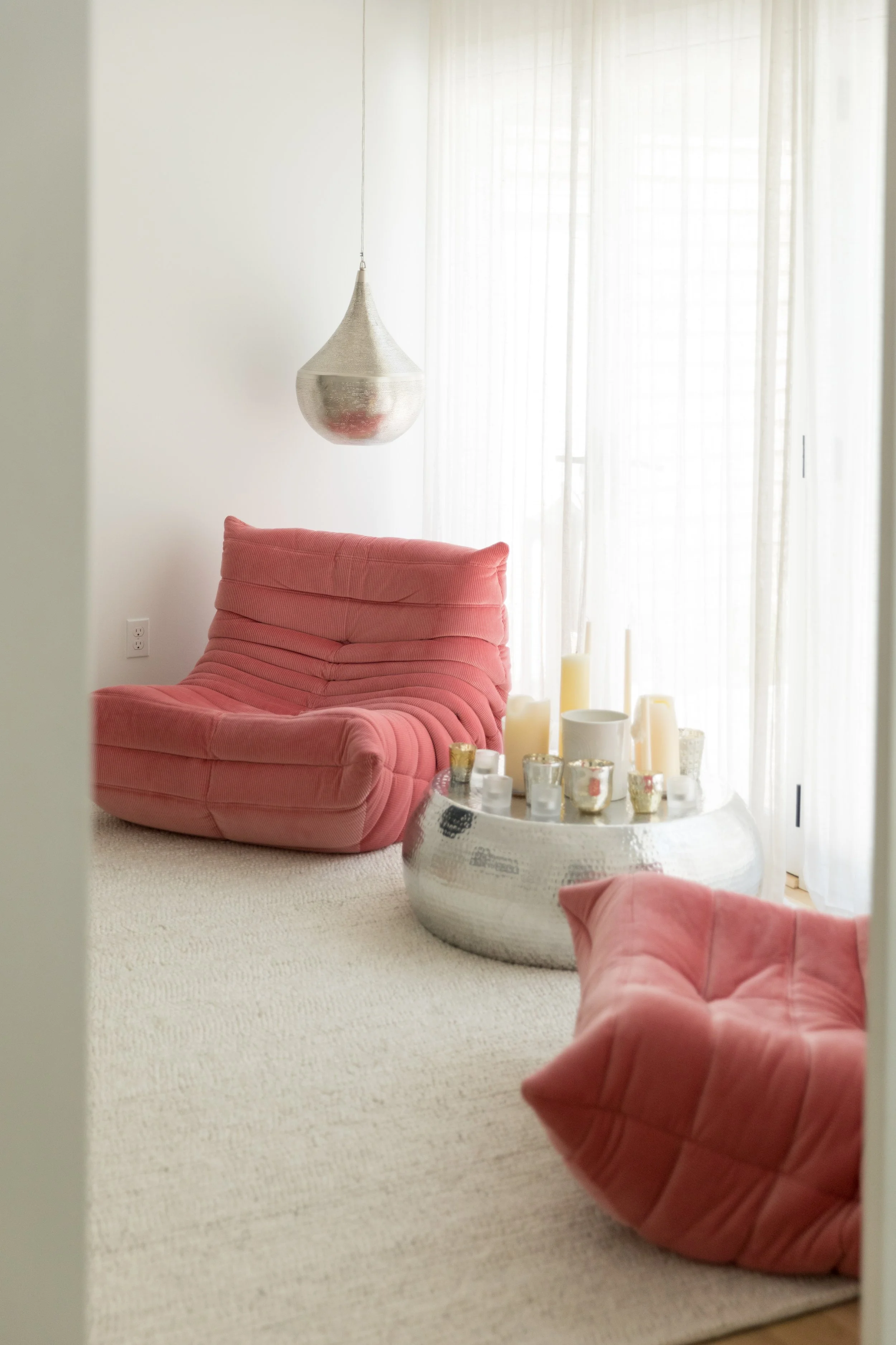 Our clients entrusted us to transform this beach home into a real stunner. A neutral palette elevates the space and put the focus on the materials while cozy textures, warm woods, and soft white throughout provide a clean and fresh backdrop for year-round living. The rules need not apply in the poolhouse, a fun and funky office / dance party / overflow guest space.